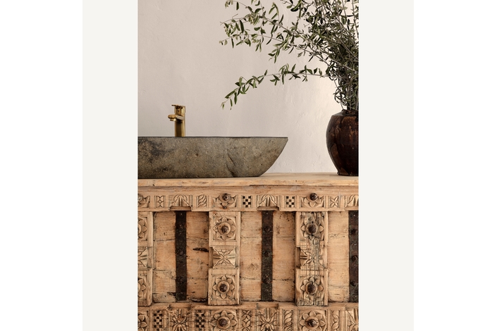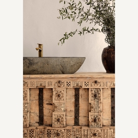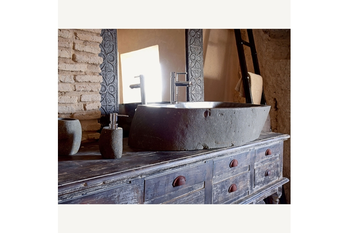 Lavabo Abstracta Acuario, en color Gris/Natural, de Estilo Contemporáneo.Fabricado en Piedra.