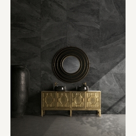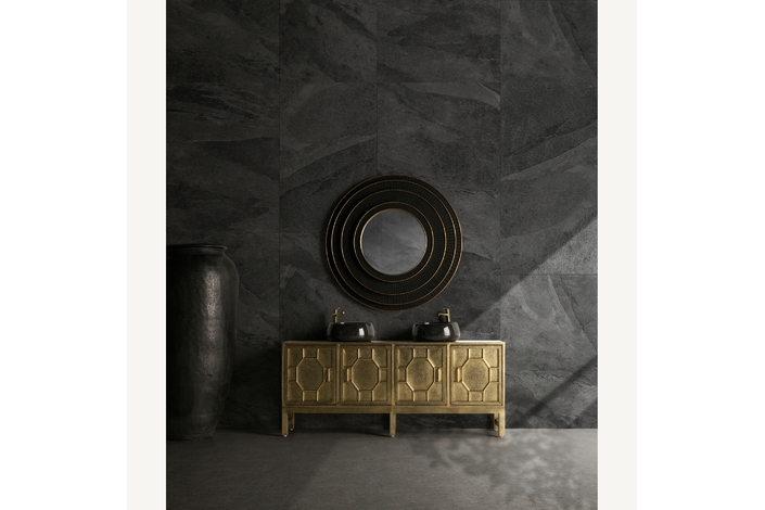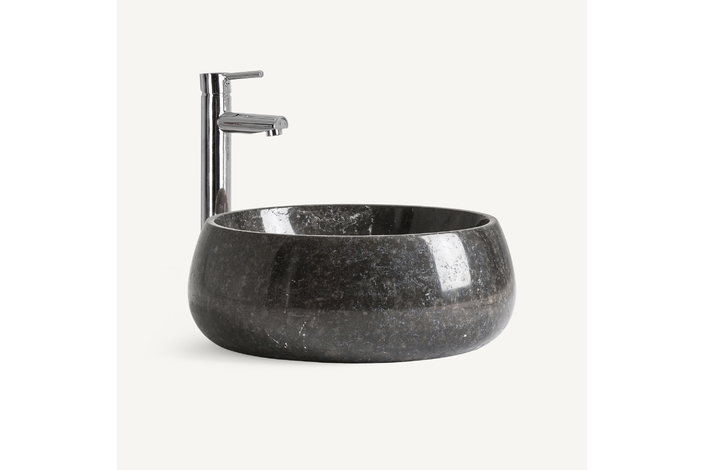 Lavabo capricornio, en color negro brillo, de estilo contemporáneo. Fabricado en mármol.