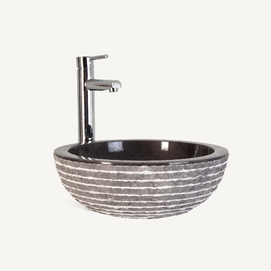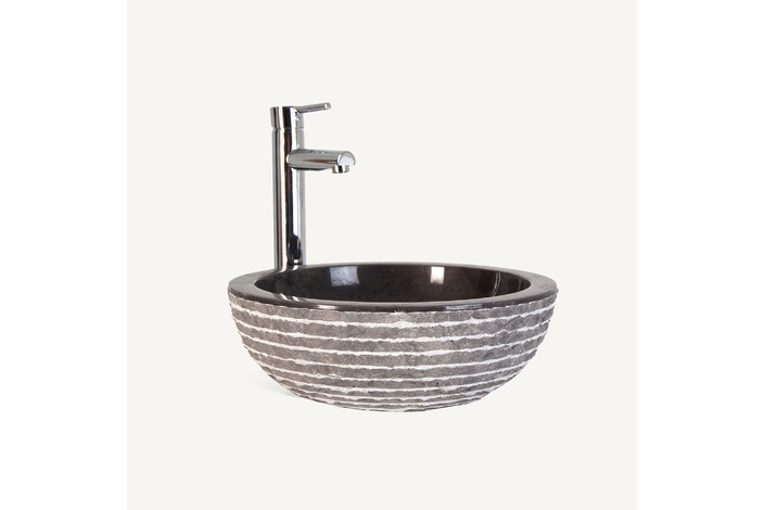 Lavabo redondo iris, en color gris, de estilo vintage. Fabricado en mármol.