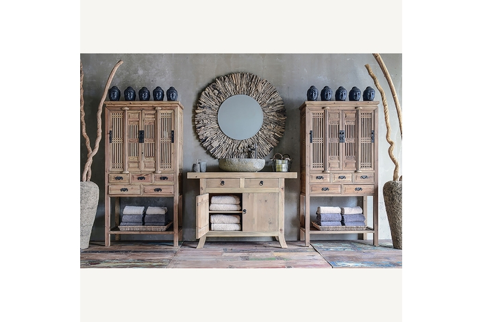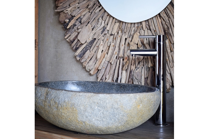 Lavabo tauro, en color arena, de estilo contemporáneo. Fabricado en piedra.