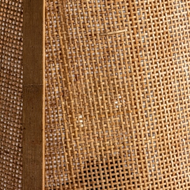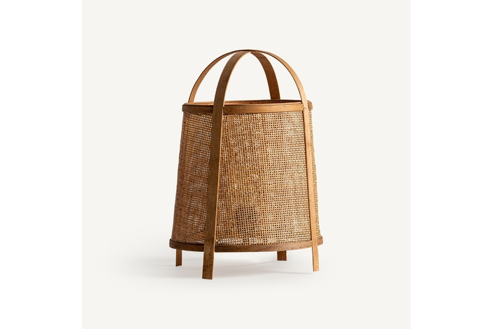 Lámpara de sobremesa kiri, en color marrón, de estilo contemporáneo. Fabricado en ratán, combinado con lino y bambú.