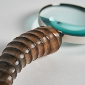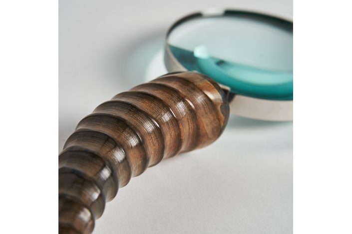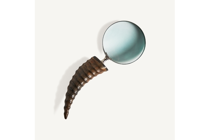 Lupa maddy, en color oro viejo, de estilo art deco. Fabricado en cuerno.