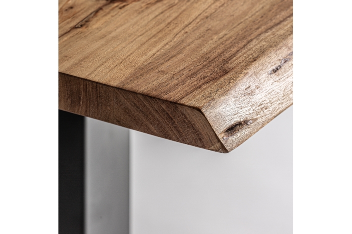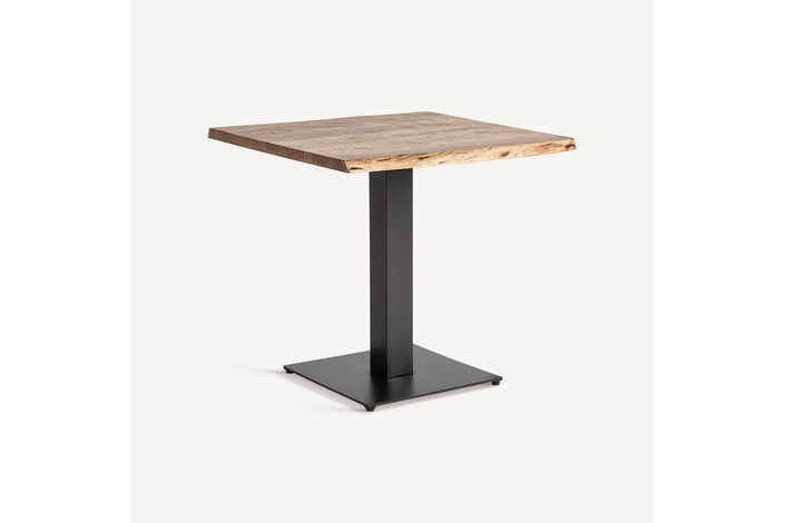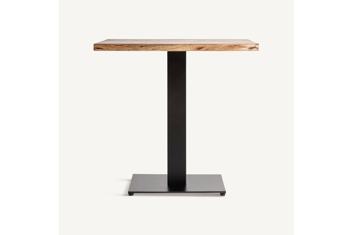 Mesa bar tinjat, en color negro/marrón, de estilo industrial. Fabricado en madera de acacia, combinado con hierro. Producto desmontable.