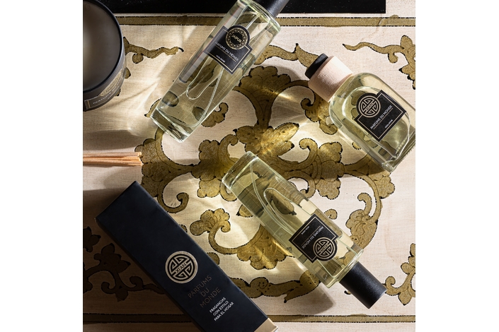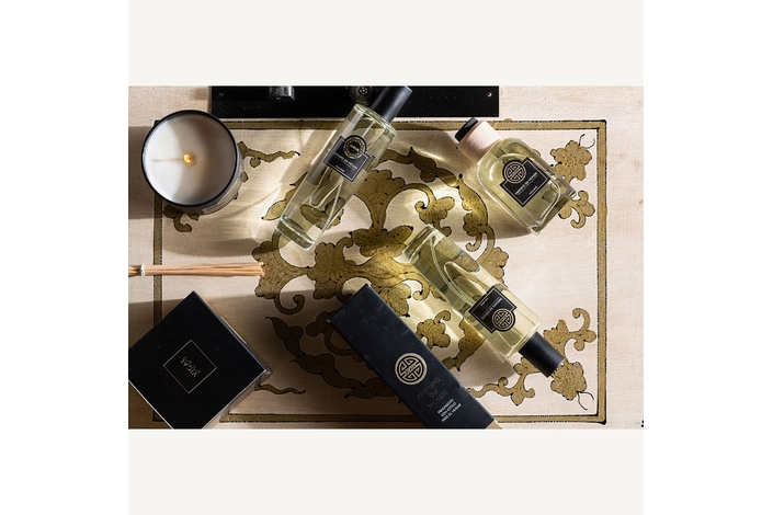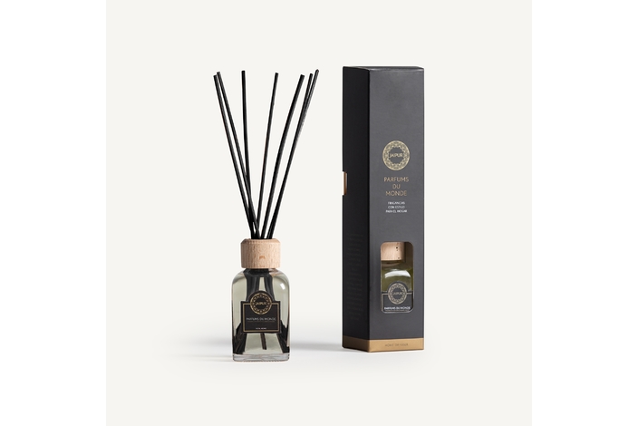 Con una forma casi ritual de iniciar la ambientación aromática del hogar, los perfumes en forma de mikado cuentan con un discreto diseño en el cual una pequeña botella de vidrio contiene los aromas líquidos. Estos suben por capilaridad a través de la varilla para evaporarse de forma sutil.