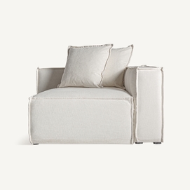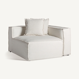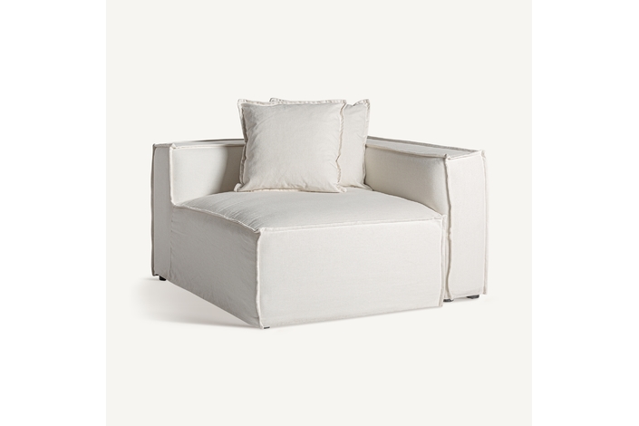 Módulo sofá esquinero derecha virolle, de estilo colonial. Fabricado en lino, en color blanco liso, combinado con algodón y espuma. Producto desenfundable. Compatible con: 36089.