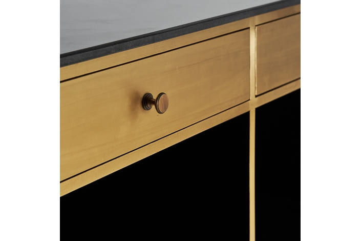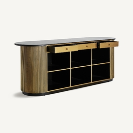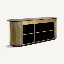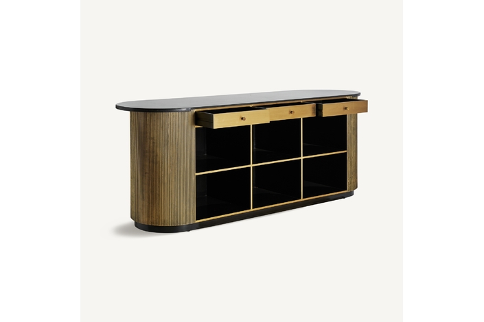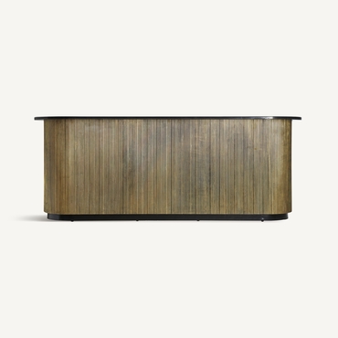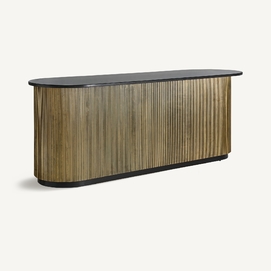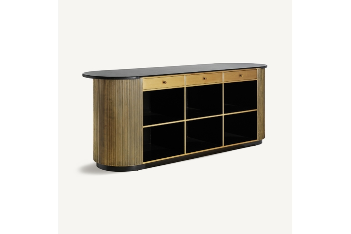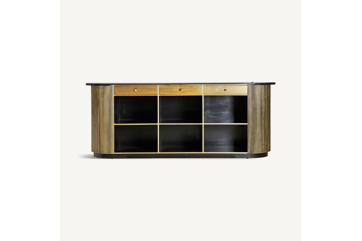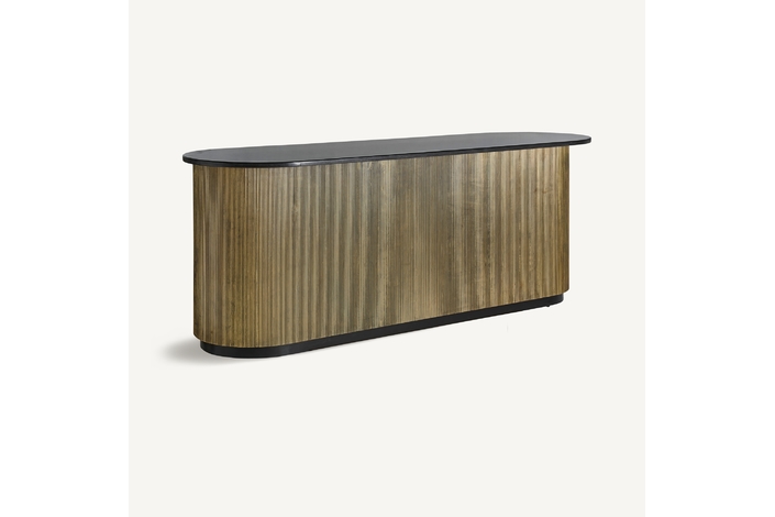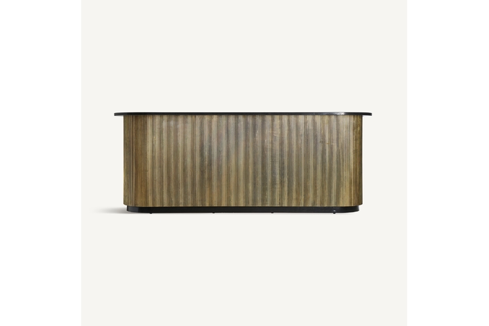 El Mostrador VALBRUNA de VICAL home, con sus impresionantes 278x86x107cm, es una declaración de estilo y lujo. Esta pieza desmontable, confeccionada en hierro y detalles de mármol, destaca por su color oro, brindando un nivel superior de sofisticación a bares o eventos exclusivos en el hogar.