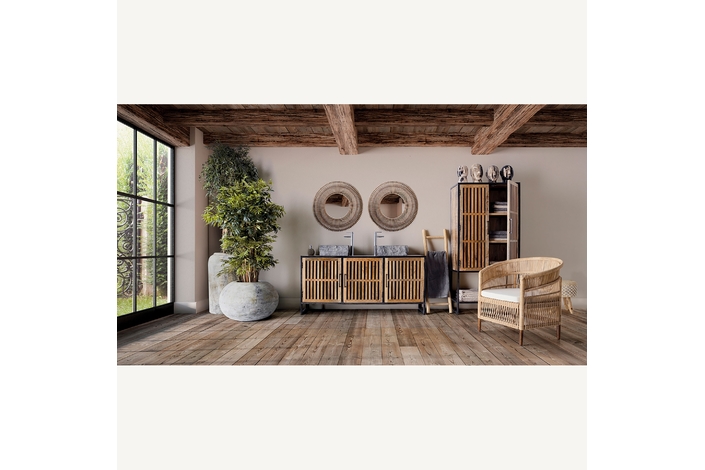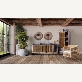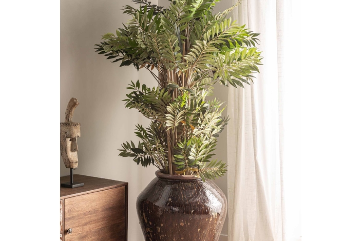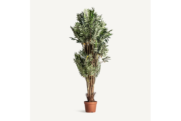 Planta bambú, en color verde, de estilo shabby chic. Fabricado en poliéster, combinado con plástico y madera.