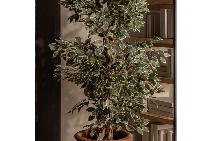 Planta ficus, en color verde, de estilo colonial. Fabricado en poliéster.
