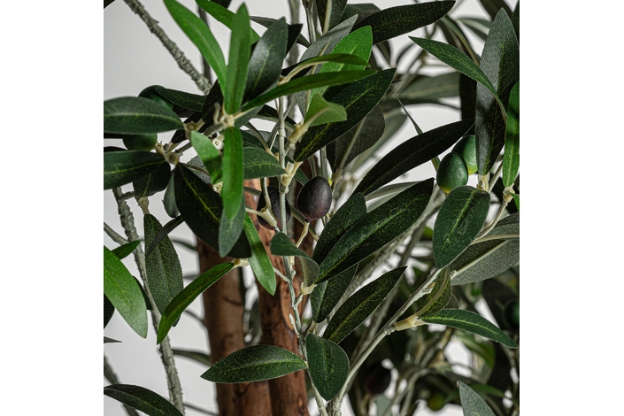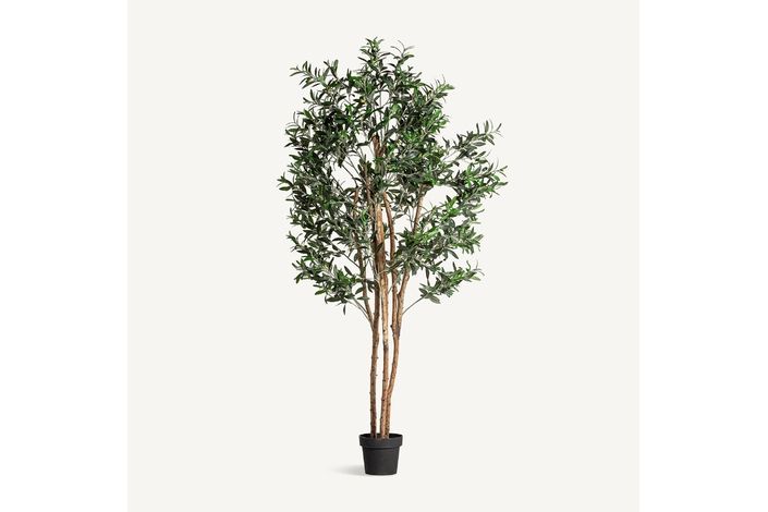 Planta alta olivo, en color verde, de estilo shabby chic. Fabricado en poliéster, combinado con plástico y madera.
