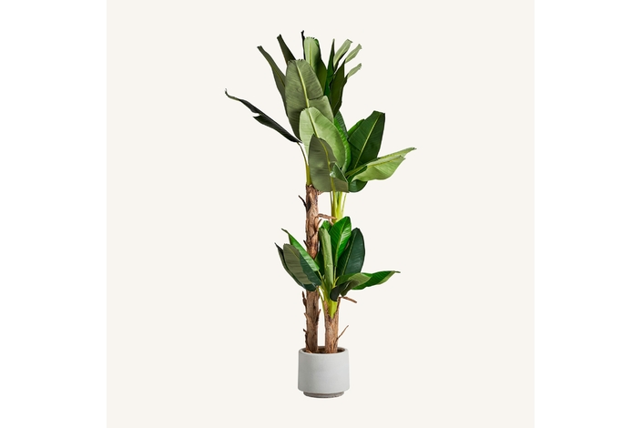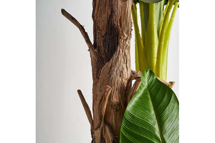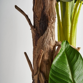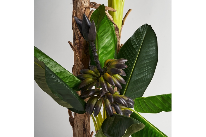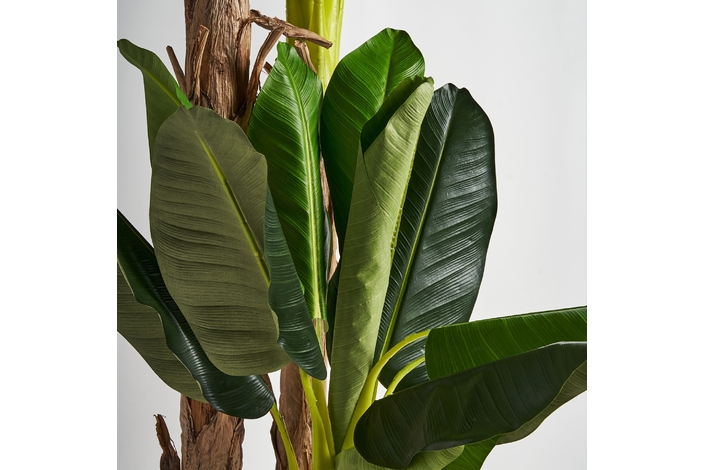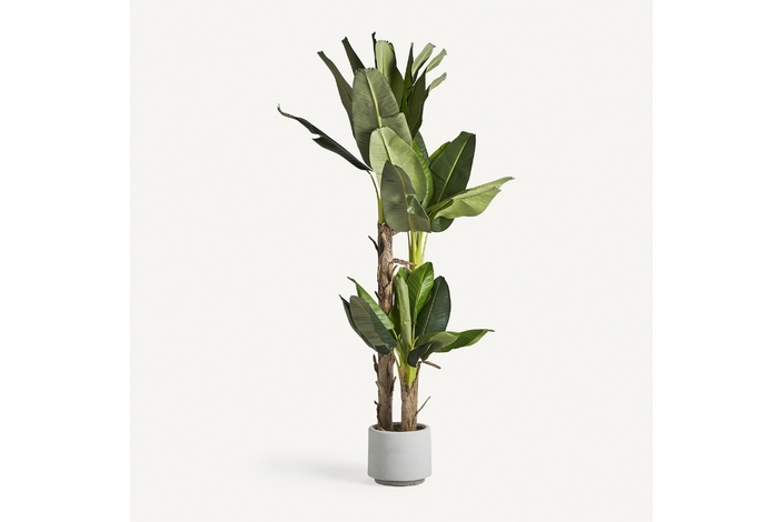 Planta platanero, en color verde, de estilo colonial. Fabricado en poliéster, combinado con plástico.