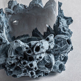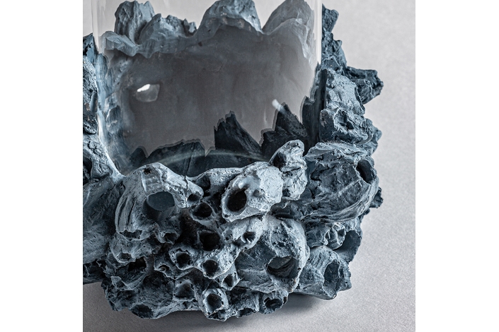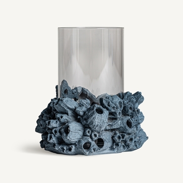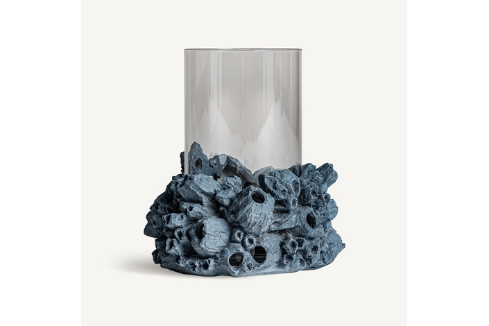 Portavela arrecife, en color azul, de estilo nórdico. Fabricado en resina, combinado con cristal.