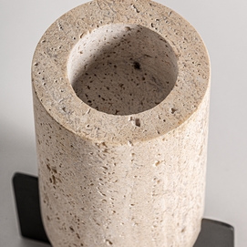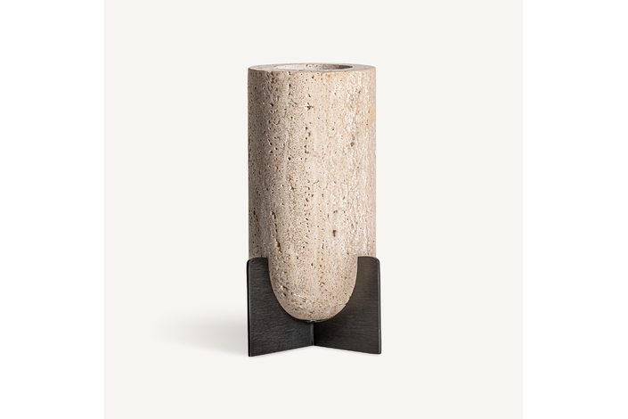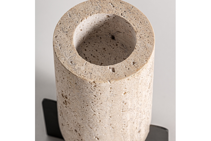 Portavela asher, en color beige, de estilo art deco. Fabricado en travertino, combinado con hierro. Producto desmontable.
