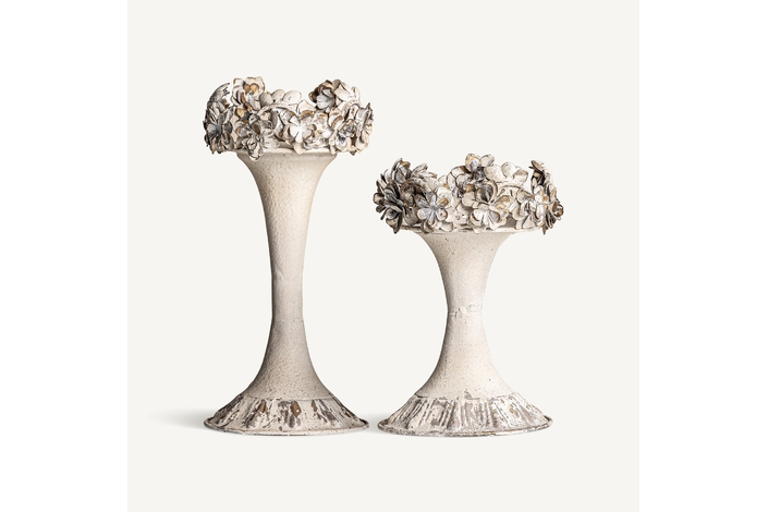 Portavela j/2, en color blanco roto envejecido, de estilo provenzal. Fabricado en hierro.