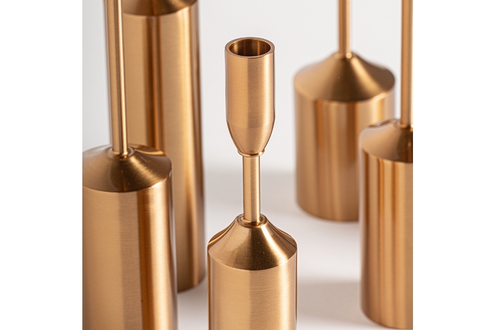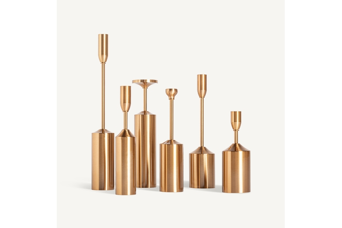 Portavela j/6 byrone, en color oro, de estilo art deco. Fabricado en hierro.