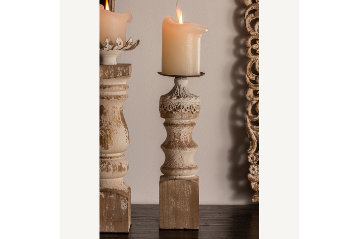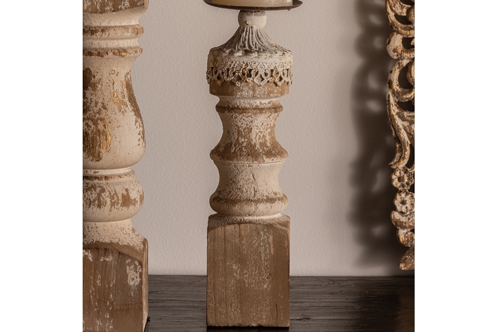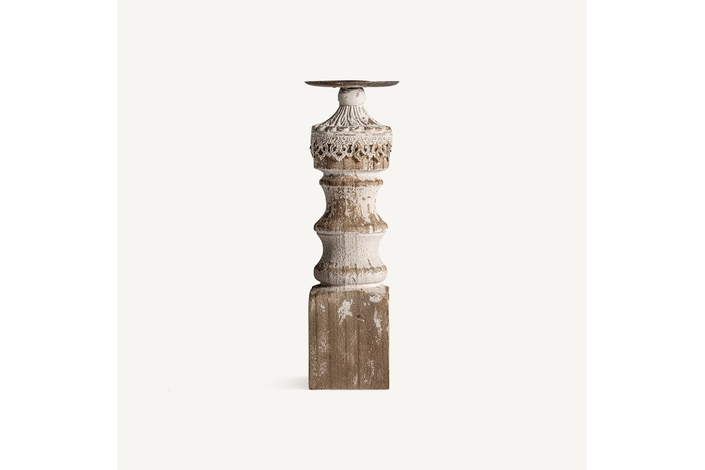 Portavela, en color marrón envejecido, de estilo colonial. Fabricado en hierro, combinado con madera de abeto.