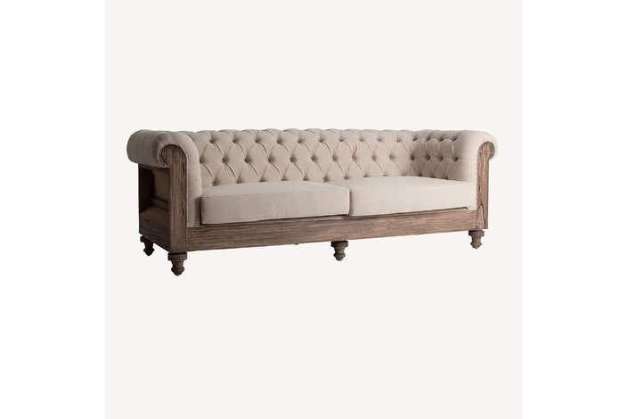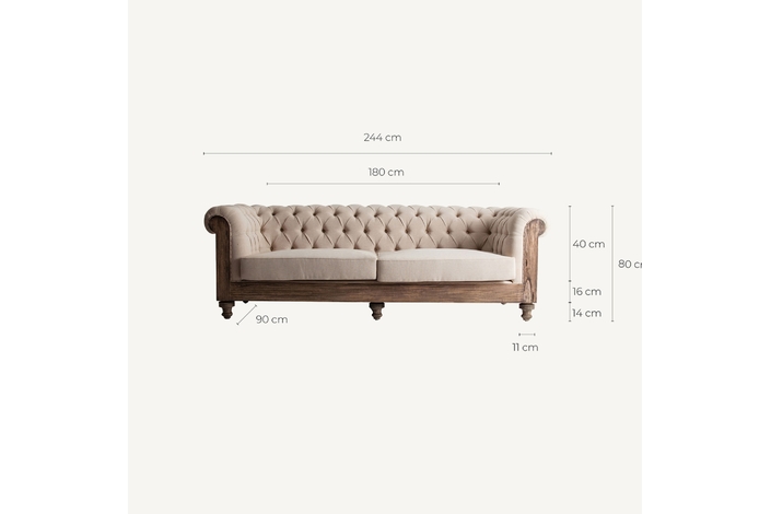 El Sofá Gore de VICAL es la personificación de la serenidad y el estilo. Con su estructura de madera tropical robusta y tapizado suave en poliéster de color beige, ofrece un oasis de calma en cualquier espacio habitable. Las dimensiones generosas de 238x90x80cm garantizan que hay espacio de sobra para estirarse o compartir con la familia y amigos. Su diseño sofisticado se inspira en el clásico sofá chesterfield, con un toque contemporáneo que lo hace adecuado para interiores modernos y tradicionales por igual. Haz del Sofá Gore el centro de tu sala de estar y sumérgete en un confort lujoso día tras día.