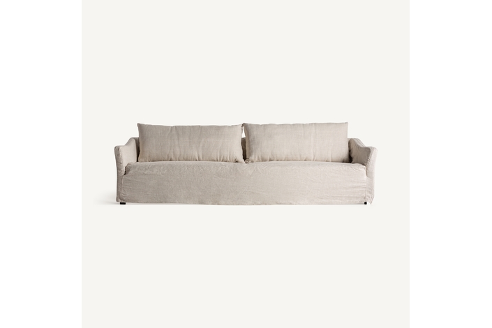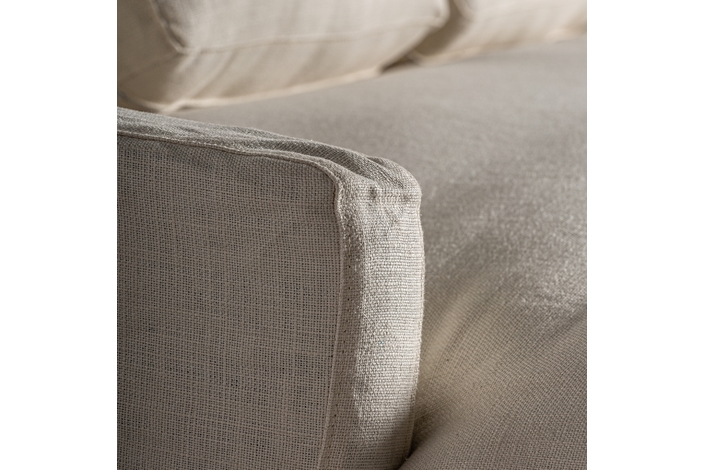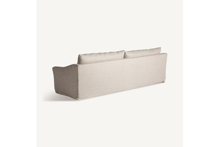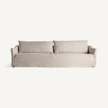 Con el Sofá Kemence de cuatro plazas de VICAL, el diseño se une a la comodidad en una pieza de grandes dimensiones, 283x103x95cm, ideal para integrarse en un salón contemporáneo. Su estructura de madera de pino aporta solidez y una larga vida útil, mientras que el acabado en blanco roto infunde una sensación de serenidad y clase en su entorno. Este sofá es una elección excelente para familias numerosas o para quienes disfrutan de recibir amigos, proporcionando un asiento espacioso y acogedor para cada ocasión. La tonalidad neutra del tapizado ofrece una gran versatilidad para jugar con cojines de colores, mantas y otros accesorios, facilitando la creación de un espacio personalizado y lleno de estilo.