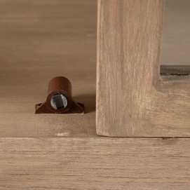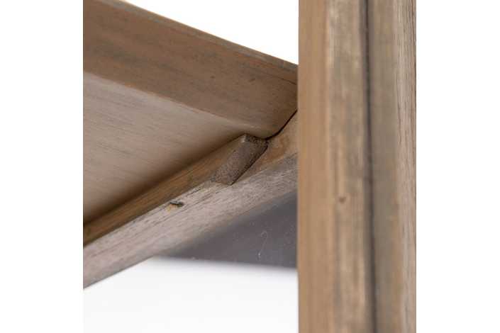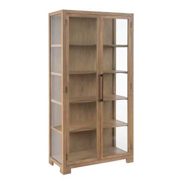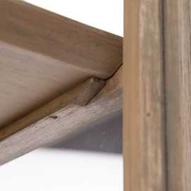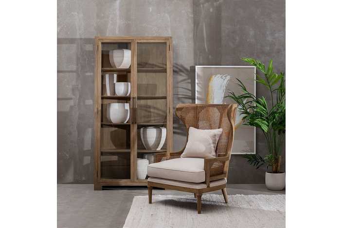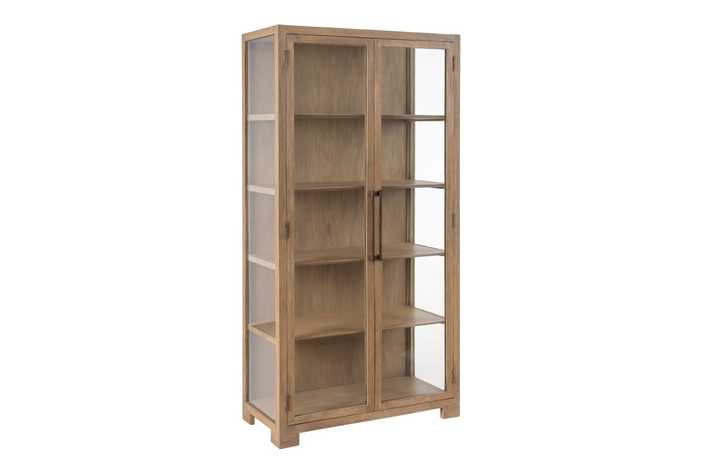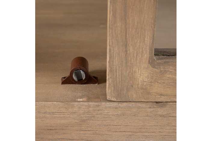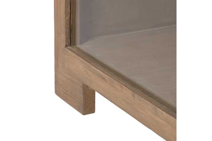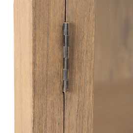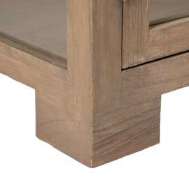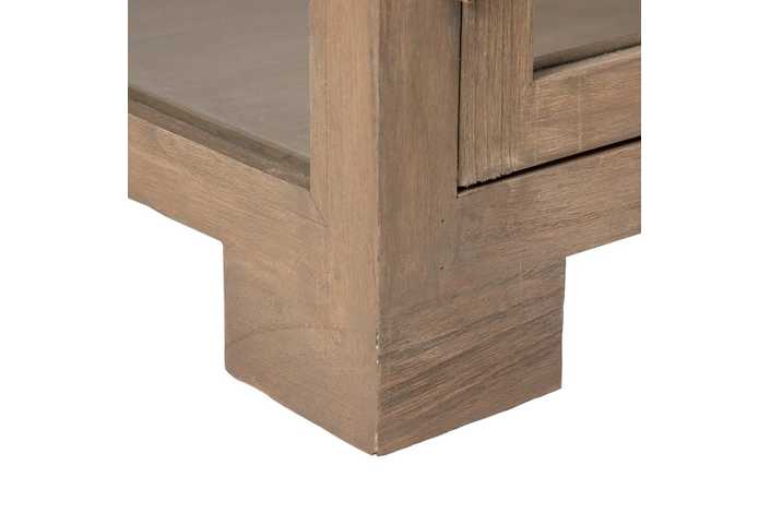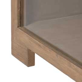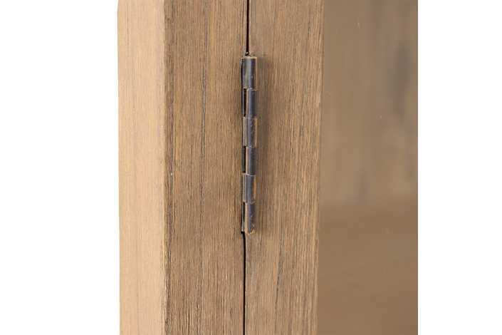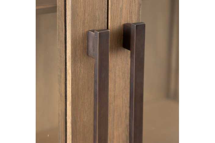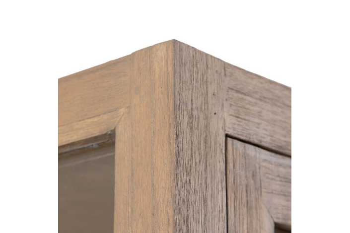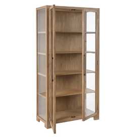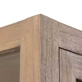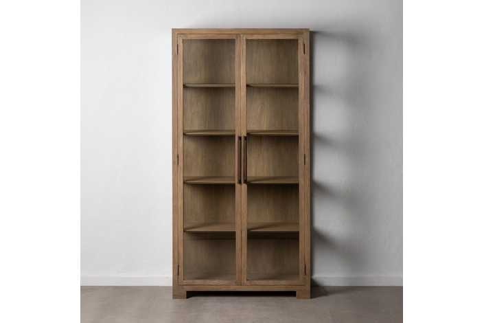 Material: Madera de mindi, cristal, dm. Medida de las puertas: 46x185cm. Altura de las patas: 6cm. Altura de las lejas: 34cm.