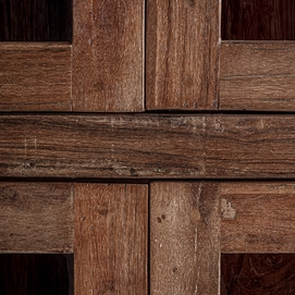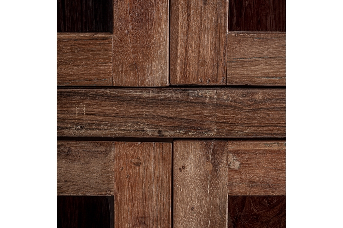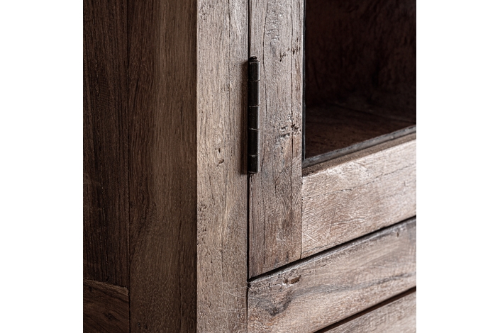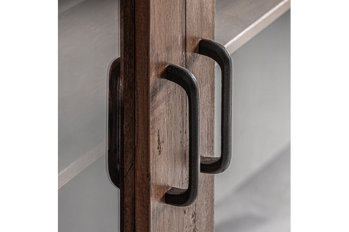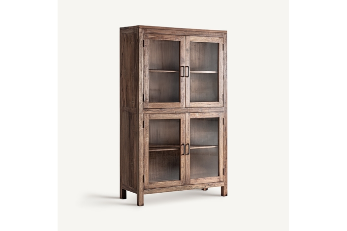 Vitrina Selby de estilo rústico, fabricado en madera recuperada en color marrón, combinado con hierro en color negro.